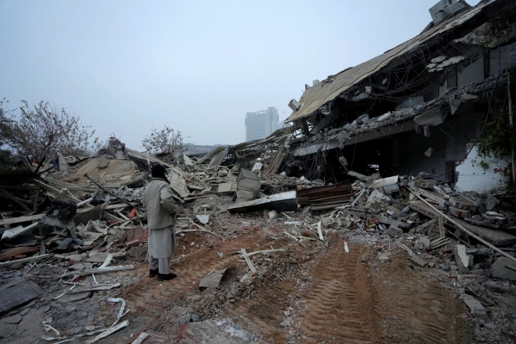 New Delhi: A man stands near debris after the demolition of alleged encroachments from a land adjoining the Syed Faiz Elahi mosque carried out by the Municipal Corporation of Delhi (MCD)