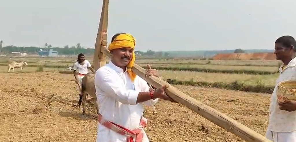State Minister for State School and Mass Education Nityananda Gond and Chairman of Planning Board Gouri Shankar Majhi graced the event as chief guests. Both the dignitaries carried out rituals and ploughed the field in the traditional way.