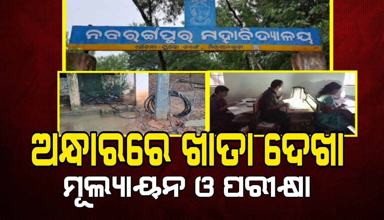 ଫୋକସ ପ୍ଲସ (ନବରଙ୍ଗପୁର)୨୨/୦୬/୨୦୨୨:ଯୁକ୍ତ ଦୁଇ ଖାତା ମୂଲ୍ୟାୟନ ପାଇଁ ସାଙ୍ଘାତିକ ବ୍ୟବସ୍ଥା । ଖାତା ମୂଲ୍ୟାୟନ ସମୟର ମୂଲ୍ୟାୟନ କେନ୍ଦ୍ର ଅନ୍ଧାର କୁ ନେଇ ଦେଖାଦେଇଛି ବିଭ୍ରାଟ। ଅନ୍ଧାର ରେ ଚାଲିଛି ଯୁକ୍ତ ଦୁଇ ଖାତା ଦେଖା ସାଙ୍ଗକୁ ଅନ୍ଧାରରେ ପରିକ୍ଷା ଦେଉଛନ୍ତି ଯୁକ୍ତ ତିନି ଛାତ୍ର ଛାତ୍ରୀ