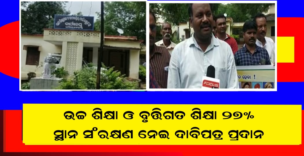 ଫୋକସ ପ୍ଲସ (ଧର୍ମଗଡ)୧୪/୦୭/୨୦୨୨: ଆଜି ଓବିସି,ଏସ୍ ସି,ଏସ୍ ଟି ମିଲିତ ମଞ୍ଚ ତରଫରୁ ଉଚ୍ଚଶିକ୍ଷା ଓ ବୃତ୍ତିଗତ ଶିକ୍ଷା ରେ ୨୭ଶତକଡା ସଂରକ୍ଷଣ ଦାବି ନେଇ ଧର୍ମଗଡ଼ ଉପଜିଲ୍ଲାପାଳ ଙ୍କ ଜରିଆରେ ମହାମହିମ ରାଜ୍ୟପାଳ ଓଡିଶା ଙ୍କୁ ଏକ ଦାବିପତ୍ର ପ୍ରଦାନ କରାଯାଇଛି।ଚଲିତ ବର୍ଷ ପରିକ୍ଷା ରେ ୯୫%ଛାତଛାତ୍ରୀ ପାସ କରିଥିବା ବେଲେ କଲେଜ୍ ମାନଙରେ ସିଟ୍ ସଂଖ୍ୟା କମ୍ ରହିଛି।ଏଣୁ କଟ ଅପ ମାର୍କ ଅଧିକ ରହିବା ସମ୍ଭାବନା ରହିଛି।ଏଣୁ ଓବିସି ବର୍ଗ ର ଛାତ୍ର ଛାତ୍ରୀ ମାନେ ନାମଲେଖା ରୁ ବଞ୍ଚିତ ହେବେ। କେନ୍ଦ୍ର ଓ ଅନ୍ୟ କେତେକ ରାଜ୍ୟ ସରକାର ଓବିସି ମାନଙ୍କୁ ଶିକ୍ଷା କ୍ଷେତ୍ରରେ 27%ସ୍ଥାନ ସଂରକ୍ଷଣ ବ୍ୟବସ୍ଥା ଥିବାବେଳେ ଓଡିଶା ସରକାର ସଂରକ୍ଷଣ ନଦେବା ଦୁର୍ଭାଗ୍ୟଜନକ ବୋଲି ବକ୍ତା ମାନେ ପ୍ରକାଶ କରିଥିଲେ।ଏଣୁ ଚଲିତ ବିଧାନ ସଭା ଅଧିବେଶନ ସମ୍ଭିଧାନ ସଂଶୋଧନ କରି ଓବିସି ମାନଙ୍କୁ ଉଚ୍ଚ ଶିକ୍ଷା ଓ ବୃତ୍ତିଗତ ଶିକ୍ଷା ରେ 27ଶତକଡା ସ୍ଥାନ ସଂରକ୍ଷଣ ଦିଆଯାଉ ନହେଲେ ଦୁର୍ବାର ଆନ୍ଦୋଳନ କରିବାକୁ ଚେତାବନୀ ଦେଇଛନ୍ତି।