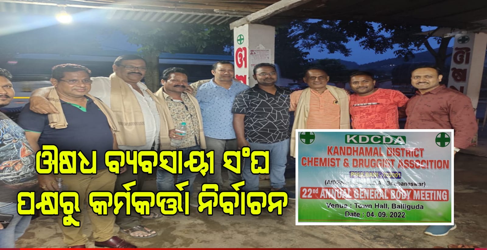 ଫୋକସ ପ୍ଲସ(କନ୍ଧମାଳ)୦୫/୦୯/୨୦୨୨: କନ୍ଧମାଳ ଜିଲ୍ଳା ଔଷଧ ବ୍ୟବସାୟୀ ସଂଘ ର ସମସ୍ତ କର୍ମକର୍ତା ଙ୍କୁ ନେଇ 22 ତମ ସାଧାରଣ ଅଧିବେଶନ ତଥା କର୍ମକର୍ତା ନିର୍ବାଚନ ବାଲିଗୁଡା ସଭାଗୃହ ଠାରେ ଦିନ 11.30 ମିନିଟ ସମୟରେ ଆରମ୍ଭ ହୋଇଥିଲା | ଏଥିରେ ନୂତନ କର୍ମକର୍ତା ନିର୍ବାଚିତ ହୋଇଥିଲେ |ସଭାପତି ଭାବେ ସୁଶାନ୍ତ କୁମାର ପଣ୍ଡା, ଉପସଭାପତି ଭାବେ ଲଷ୍ମୀଧର ସାହୁ, ୟୁ. ବଳରାମ ପାତ୍ର, ସୁକାନ୍ତ କୁମାର ପାତ୍ର, ଚନ୍ଦ୍ରଶେଖର ପଣ୍ଡା, ସାଧାରଣ ସମ୍ପାଦକ ଭାବେ ରାମଚନ୍ଦ୍ର ପାତ୍ର,କୋଷାଧକ୍ଷ ଅଶୋକ କୁମାର ପୃଷ୍ଟି,ସହ ସମ୍ପାଦକ ଦିଲୀପ କୁମାର ସାହୁ, ଓଁ ପ୍ରକାଶ ବେହେରା, ଭି. ତିରୁପତି ରାଓ, ସଂଘାଠନିକ ସମ୍ପାଦକ ଭାବେ ରବି ନାରାୟଣ ପାତ୍ର, ୟୁସିଡ଼ିଏ ର ସଭାପତି ପି. ସତ୍ୟନାରାୟଣ ,ରାଜ୍ୟ ସମ୍ପାଦକ ପ୍ରଶାନ୍ତ କୁମାର ମହାପାତ୍ର,ଅଭ୍ୟନ୍ତରିଣ ହିସାବ ନିରୀକ୍ଷଣ ରୂପେ ସିମାଞ୍ଚଳ ଦାସ, ମନୋଜ କୁମାର ପଣ୍ଡା, ଜନ ସମ୍ପର୍କ ସମ୍ପାଦକ ବିରଜା ପ୍ରସାଦ ପଟନାୟକ, ଉପଦେଷ୍ଟା ଭାବେ ଅଶୋକ କୁମାର ମହାଙ୍କୁଡ ଓ ପୂର୍ଣଚନ୍ଦ୍ର ବେହେରା,ସମ୍ବଲପୁର ସମ୍ପାଦକ ଜୟପ୍ରକାଶ ତ୍ରିପାଠୀ ଯୋଗ ଦେଇଥିଲେ,ପର୍ଯ୍ୟବେକ୍ଷକ ଭାବେ ନୟାଗଡ ର ସଭାପତି ପ୍ରହଲ୍ଲାଦ ସାହୁ, ଗଞ୍ଜାମ ଜିଲ୍ଳା ସଭାପତି ଭାବେ ବିଷ୍ଣୁ ପ୍ରସାଦ ପଣ୍ଡା ପ୍ରଭୁତି ମଂଚାସୀନ ଥିଲେ |ଆଜି ତିନି ବର୍ଷ ପାଇଁ କର୍ମକର୍ତା ନିର୍ବାଚନ ହୋଇଯାଇଛି |ଆଜିର ନିର୍ବାଚନ କୁ ନିର୍ବାଚନ ଅଧିକାରୀ ଭାବେ ଲଷ୍ମୀଧର ସାହୁ ଓ ସହ ନିର୍ବାଚନ ଅଧିକାରୀ ଭାବେ ଦିଲୀପ କୁମାର ସାହୁ ପରିଚାଳନା କରିଥିଲେ |