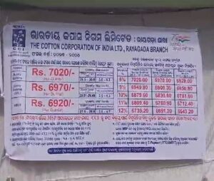 ବଲାଙ୍ଗୀର24/11/2023; ପାଟଣାଗଡ଼ ଅଞ୍ଚଳରେ ଧଳା ସୁନା କୁହାଯାଉଥିବା କପା ମଣ୍ଡି ସିସିଆଇ ପକ୍ଷରୁ ପ୍ରତି ବର୍ଷ ଭଳି ଚଳିତ ବର୍ଷ ମଧ୍ୟ ଯୋଗିମୁଣ୍ଡା ଆରଏମସି ଠାରେ ଉଦଘାଟନ କରିଥିଲେ ବଲାଙ୍ଗୀର ଜିଲ୍ଲାପାଳ ଚଞ୍ଚଳ ରାଣା l ଉପସ୍ଥିତ ଚାଷୀ ମାନଙ୍କ ଗହଣରେ ଚଳିତ ବର୍ଷ କପାର ମୂଲ୍ୟ ଆଦ୍ରତା 8% ମୂଲ୍ୟରେ 7020/-ଟଙ୍କା, ଏବଂ ଆଦ୍ରତା 12% ମୁଲ୍ୟରେ 6739/-ଟଙ୍କା ରେ କ୍ରୟ କରିବା ପାଇଁ ଜିଲ୍ଲାପାଳ ଘୋଷଣା କରିଛନ୍ତି l କପା ମଣ୍ଡି ଦୈନିକ ସୋମବାର ଠାରୁ ଶୁକ୍ରବାର ପର୍ଯ୍ୟନ୍ତ ସକାଳ ସମୟ 6 ଟାରୁ ସନ୍ଧ୍ୟା 5 ଟା ଯାଏ ଖୋଲାରହିବ ଓ ନିର୍ଧାରିତ ମୂଲ୍ୟ ଧାର୍ଯ୍ୟରେ ଏପଟ ସେପଟ ହେବ ନାହିଁ ଏବଂ 7 ଟି ମିଲର ଲାଇସେନ୍ସ ପ୍ରାପ୍ତ ଜିଲ୍ଲାପାଳଙ୍କ ଦ୍ୱାରା ଅନୁବନ୍ଧିତ ହୋଇଛି ବୋଲି ସିସିଆଇ ମୁଖ୍ୟ ଓମ ପ୍ରକାଶ ବଘେଲ ସୂଚନା ଦେଇଛନ୍ତି l ଉକ୍ତ କାର୍ଯ୍ୟକ୍ରମରେ ପାଟଣାଗଡ ଉପ ଜିଲ୍ଲାପାଳ ବିଜୟାନନ୍ଦ ସେଠି ,ଆରଏମସି ସେକ୍ରେଟାରୀ କ୍ଷମାନିଧି ଗଡ଼ତ୍ୟା,ଏକାଉଣ୍ଟଟେଣ୍ଡ ମନୋଜ ଷଡ଼ଙ୍ଗୀ, ଗିରିରାଜ ଠାକୁର, ଚାଷୀ ନେତା ଜତି ପଧାନ,ସହିତ ଅଞ୍ଚଳର ଚାଷୀମାନେ ପ୍ରମୁଖ ଉପସ୍ଥିତ ଥିଲେ l