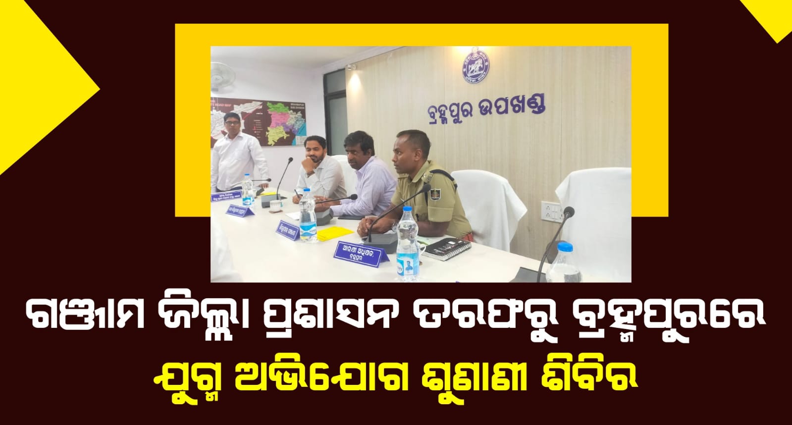 ଫୋକସ ପ୍ଲସ 27/2/23(ବ୍ରହ୍ମପୁର): ଆଜି ଗଞ୍ଜାମ ଜିଲ୍ଲା ପ୍ରଶାସନ ତରଫରୁ ବ୍ରହ୍ମପୁର ଉପ ଜିଲ୍ଲାପାଳଙ୍କ ସମ୍ମିଳନୀ କକ୍ଷଠାରେ ବ୍ରହ୍ମପୁର ଉପଖଣ୍ଡ ସ୍ତରୀୟ ଜନ ଅଭିଯୋଗ ଶୁଣାଣୀ ଅନୁଷ୍ଠିତ ହୋଇଯାଇଛି । ଗଞ୍ଜାମ ଜିଲ୍ଲାପାଳ ଦିବ୍ୟ ଜ୍ୟୋତି ପରିଡାଙ୍କ ଅଧ୍ୟକ୍ଷତାରେ ଅନଷ୍ଠିତ ଏହି ଜନ ଅଭିଯୋଗ ଶୁଣାଣୀରେ ବ୍ରହ୍ମପୁର ଆରକ୍ଷୀ ଅଧିକ୍ଷକ ଶ୍ରବଣ ବିବେକ ଏମ, ବ୍ରହ୍ମପୁର ଉପଜିଲ୍ଲାପାଳ ଆଶୁତୋଷ କୁଲକର୍ଣୀ ଉପସ୍ଥିତ ଥିଲେ l