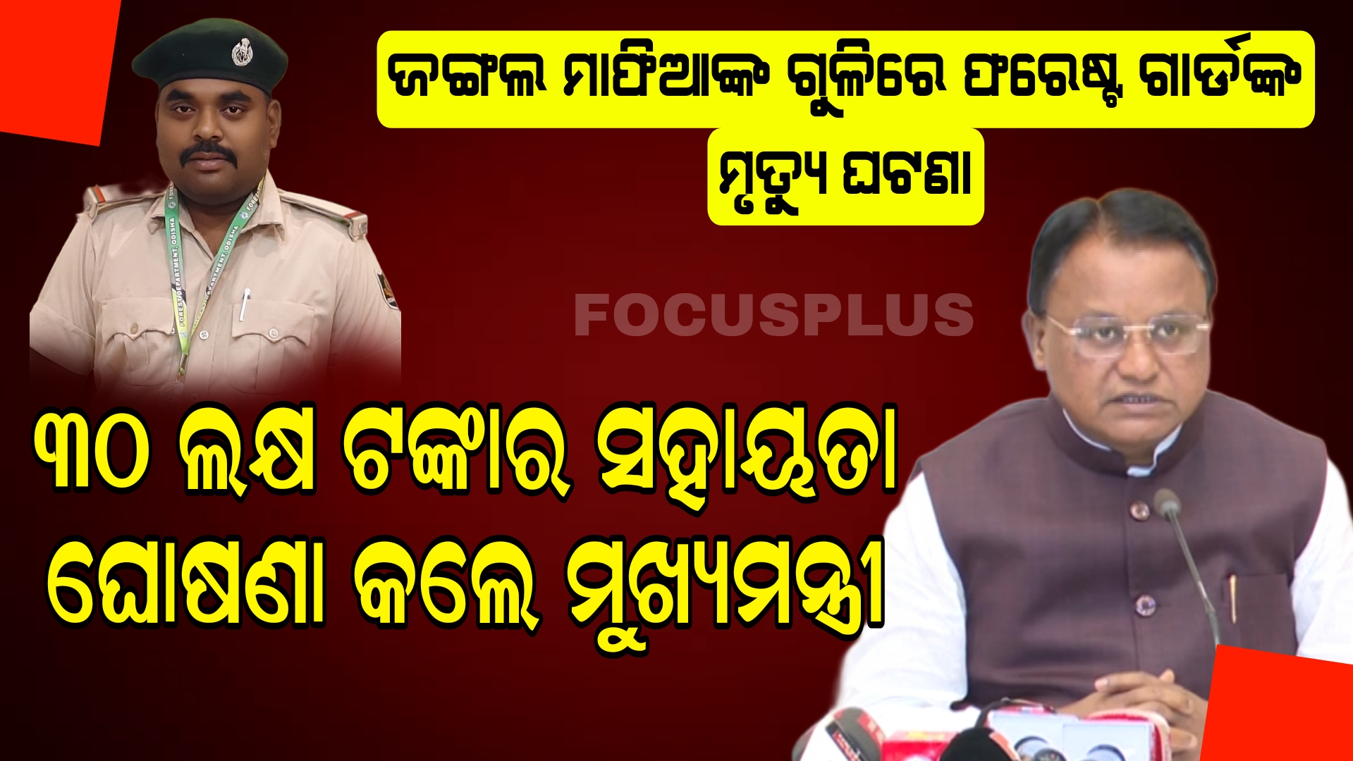 ରାଜ୍ୟ ଜଙ୍ଗଲ ମାଫିଆଙ୍କ ଗୁଳିରେ ଫରେଷ୍ଟ ଗାର୍ଡଙ୍କ ମୃତ୍ୟୁ ଘଟଣା Sukanta NayakMay 24, 2025 ଜଙ୍ଗଲ ମାଫିଆଙ୍କ ଗୁଳିରେ ଫରେଷ୍ଟ ଗାର୍ଡଙ୍କ ମୃତ୍ୟୁ ଘଟଣା ୩୦ ଲକ୍ଷ ଟଙ୍କାର ସହାୟତା ଘୋଷଣା କଲେ ମୁଖ୍ୟମନ୍ତ୍ରୀ ମୋହନ ଚରଣ ମାଝୀ ମୃତକ ହିନ୍ଦୋଳ ରେଞ୍ଜର କାର୍ଯ୍ୟରତ ଫରେଷ୍ଟ ଗାର୍ଡ ପ୍ରହଲ୍ଲାଦ ପ୍ରଧାନ