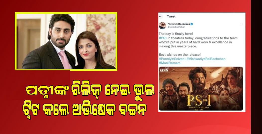 ଫୋକସ ପ୍ଲସ(ବ୍ୟୁରୋ): ସେପ୍ଟେମ୍ବର ୩୦ ଶୁକ୍ରବାର ଦିନ ଅଭିଷେକ ବଚ୍ଚନ ଟ୍ୱିଟରରେ ପତ୍ନୀ ଏଶ୍ୱର୍ଯ୍ୟାଙ୍କୁ ତାଙ୍କର ନୂତନ ଫିଲ୍ମ ରିଲିଜ୍ ପୋନିୟିନ୍ ସେଲଭାନ୍ ପାଇଁ ଶୁଭେଚ୍ଛା ଜଣାଇଛନ୍ତି। ସେ ଏହି ଚଳଚ୍ଚିତ୍ରକୁ ‘ମାଷ୍ଟରପିସ୍’ ବୋଲି ବର୍ଣ୍ଣନା କରିଛନ୍ତି। ସେ କିନ୍ତୁ ପୋନିୟିନ୍ ସେଲଭାନଙ୍କ ଏକ ମର୍ଫେଡ୍ ପୋଷ୍ଟର ସେୟାର କରିଛନ୍ତି। ସେ ଏଥିରେ ଏଶ୍ୱର୍ଯ୍ୟାଙ୍କ ନାମ ମଧ୍ୟ ଭୁଲ ବନାନ କରିଥିଲେ। ପରେ ଭୁଲ ଜାଣିପାରି ପୋଷ୍ଟ ଡିଲିଟ୍ ମଧ୍ୟ କରିଛନ୍ତି |