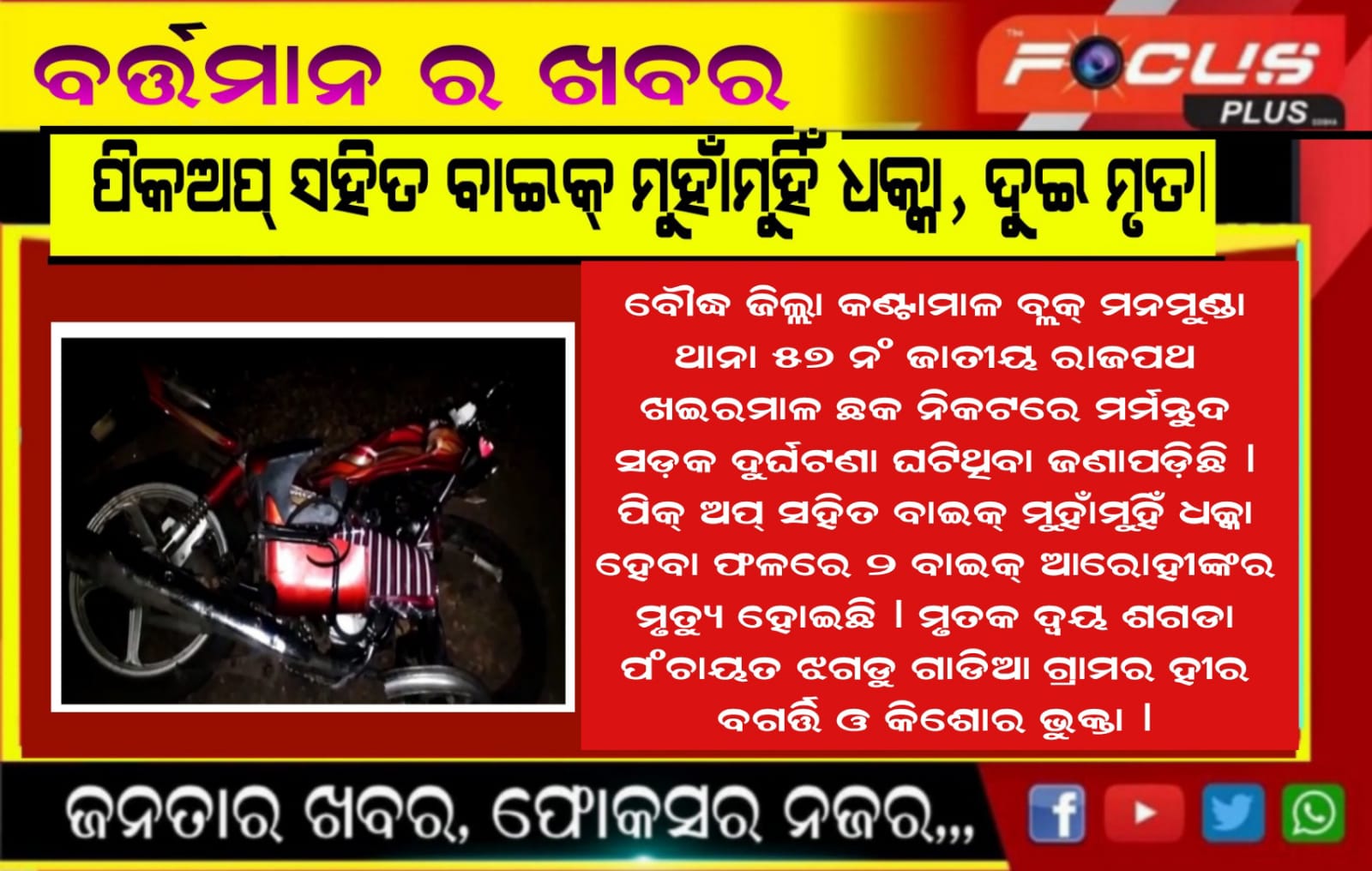 ୧୩ ବର୍ଷର ସାହିଲ ନିଖୋଜ ଫୋକସ ପ୍ଲସ (ଉମରକୋଟ)୨୯/୦୬/୨୦୨୨: ନବରଙ୍ଗପୁର ଜିଲ୍ଲା ଉମରକୋଟ ପୌରପାଳିକା ଅନ୍ତର୍ଗତ ଦରଗାଗୁଡା ୟୁଭି ଚାରି ନମ୍ବର ର ବାସିନ୍ଧା ପ୍ରଶାନ୍ତ ପୋଦାର ଙ୍କ ପୁଅ ସାହିଲ ପୋଦାର…