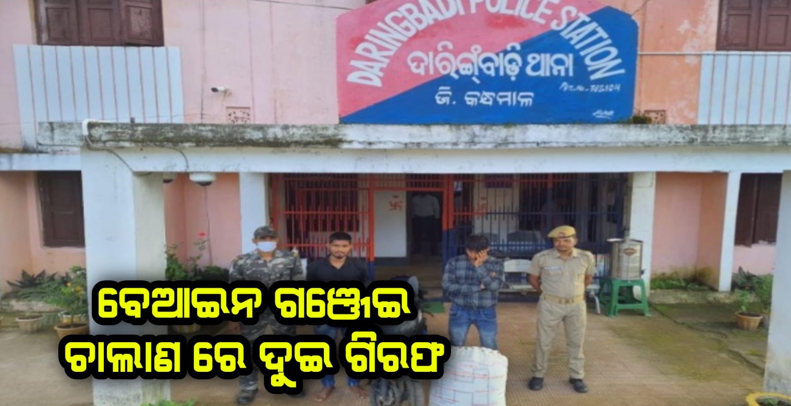 ଫୋକସ ପ୍ଲସ(ଦାରିଙ୍ଗବାଡ଼ି)୨୭/୦୮/୨୦୨୨: କନ୍ଧମାଳ ଜିଲା ଦାରିଙ୍ଗବାଡ଼ି ଥାନା ପକ୍ଷରୁ ଆଜି ଦୁଇଜଣ ବେଆଇନ ଗଞ୍ଜେଇ ଚାଲାଣ କାରିକୁ ଗିରଫ କରି କୋର୍ଟ ଚାଲାଣ କରିଥିବା ଥାନା ଅଧିକାରୀ କୌଶିକ ମାଝୀ ସୂଚନା ଦେଇଛନ୍ତି । କୌଣସି ବିଶ୍ୱସ୍ତ ସୂତ୍ରରୁ ଖବର ପାଇ ଶ୍ରାନିକେତା ଓ ଦାରିଙ୍ଗବାଡ଼ି ମଧ୍ୟରେ ଥିବା ଆମ୍ବଖାଲିଆ ଘାଟିରେ ପୋଲିସ ପକ୍ଷରୁ ଛାଞ୍ଚ କରାଯାଇଥିଲା । ଏହି ସମୟରେ ୫୯ନଂ ଜାତୀୟ ରାଜପଥର ଆମ୍ବ ଖାଲିଆ ସ୍ଥାନରେ ସକାଳ ପ୍ରାୟ ଆଠ ଘଣ୍ଟା ସମୟରେ ଦୁଇ ଜଣ ୨୨୦କଳା ବାଜାଜ ପଲସର ମଟର ସାଇକେଲ ନଂ ଓଡି ୩୨ଏଫ ୧୯୮୫ ରେ ବାଲିଗୁଡ଼ା ରୁ ସୋରଡ଼ାକୁ ଗଞ୍ଜେଇ ଚାଲାଣ କରିବା ପାଇଁ ଯାଉଥିଲେ । ପୋଲିସ ମଟର ସାଇକେଲକୁ ସେଠାରେ ଅଟକାଇ ଯାଞ୍ଚ କରି ଗଞ୍ଜେଇ ବୋଲି ଜାଣି ପାରିଥିଲେ । ଏହାପରେ ଚାଲାଣ କାରି ଦୁଇ ଜଣଙ୍କୁ ଗିରଫ କରି ଥାନାକୁ ଆଣିଥିଲେ । ଗଞ୍ଜେଇ ଓଜନ ପରେ ୨୧ କେଜି ୧୫୦ ଗ୍ରାମର ବୋଲି ଜଣା ପଡିଥିଲା । ଦୁଇ ଜଣ ଚାଲାଣ କାରି ହେଲେ ଗଞ୍ଜାମ ଜିଲା ସୋରଡ଼ା ଥାନା ଅନ୍ତର୍ଗତ ଖାରିଆଗୁଡ଼ା ଗ୍ରାମର ଯୋଗମହନ ପ୍ରଧାନ ଓ କେସେରା ଗ୍ରାମର ପ୍ରବୀଣ କୁମାର ଗୌଡ଼ ବୋଲି ଜଣାପଡ଼ିଛି ।ଏହି ଘଟଣାରେ ଥାନା ପକ୍ଷରୁ କେସ ନଂ ୧୪୩/୨୨ରେ ମକଦମା ରୁଜୁ କରି ଆସାମି ଦୁଇ ଜଣକୁ ଗତକାଲି କୋର୍ଟ ଚାଲାଣ କରାଯାଇ ଥିବା ଥାନା ପକ୍ଷରୁ ସୂଚନା ।