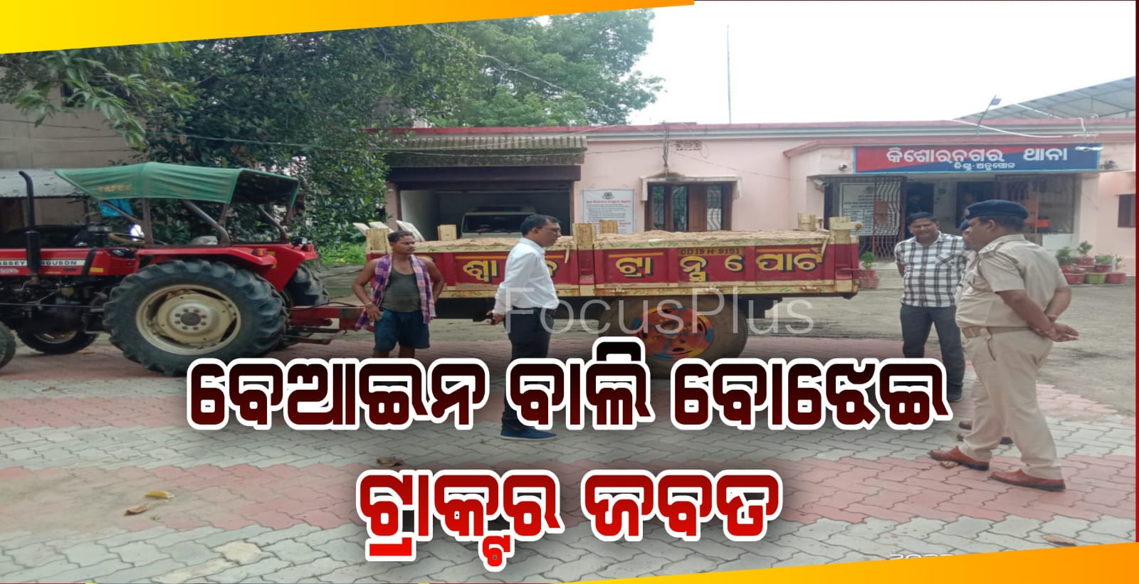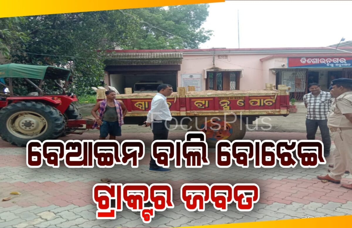ଫୋକସ ପ୍ଲସ(କିଶୋରନଗର)୧୫/୦୯/୨୦୨୨: ଅନୁଗୋଳ ଜିଲ୍ଲା ଆଠମଲ୍ଲିକ ଉପଖଣ୍ଡ କିଶୋର ନଗର ବ୍ଲକ ର ଏକ ରାସ୍ତା ରେ ବେନିୟମ ବାଲି ବୋଝେଇ ଟ୍ରାକର ଜବତ ହୋଇଥିବା ଦେଖାଦେଇଛି । ସୂଚନା ନେବାରେ ଜଣାଯାଏ କି ଆଠମଲ୍ଲିକ ଉପଜିଲ୍ଲାପାଳ ତରାଣୀ ସେନ ସୁନା ଆଠମଲ୍ଲିକ ଆଡୁ କିଶୋର ନଗର ଅଭିମୁଖେ ଆସିବା ବାଟରେ OD 19H 9151 ନଂ ଟ୍ରାକ୍ଟର ଖୋଲାରେ ବାଲି ବୋଝେଇ କରି ଯାଉଥିବା ଗାଡିକୁ ଦେଖି ଅଟକି ଟ୍ରାକ୍ଟର କୁ ଅଟକାଇ ଡ୍ରାଇଭରକୁ ସମସ୍ତ ତଥ୍ୟ ମାଗିବାରେ ଡ୍ରାଇଭର ତଥ୍ୟ ଦେଇନ ପାରିବାରୁ କିଶୋର ନଗର ଥାନା ଅଧିକାରୀ ଙ୍କୁ ଖବର କରି ଥାନା କୁ ଟ୍ରାକ୍ଟର ଟାଣିନେଇଥିବା ଜଣାଯାଇଛି ।