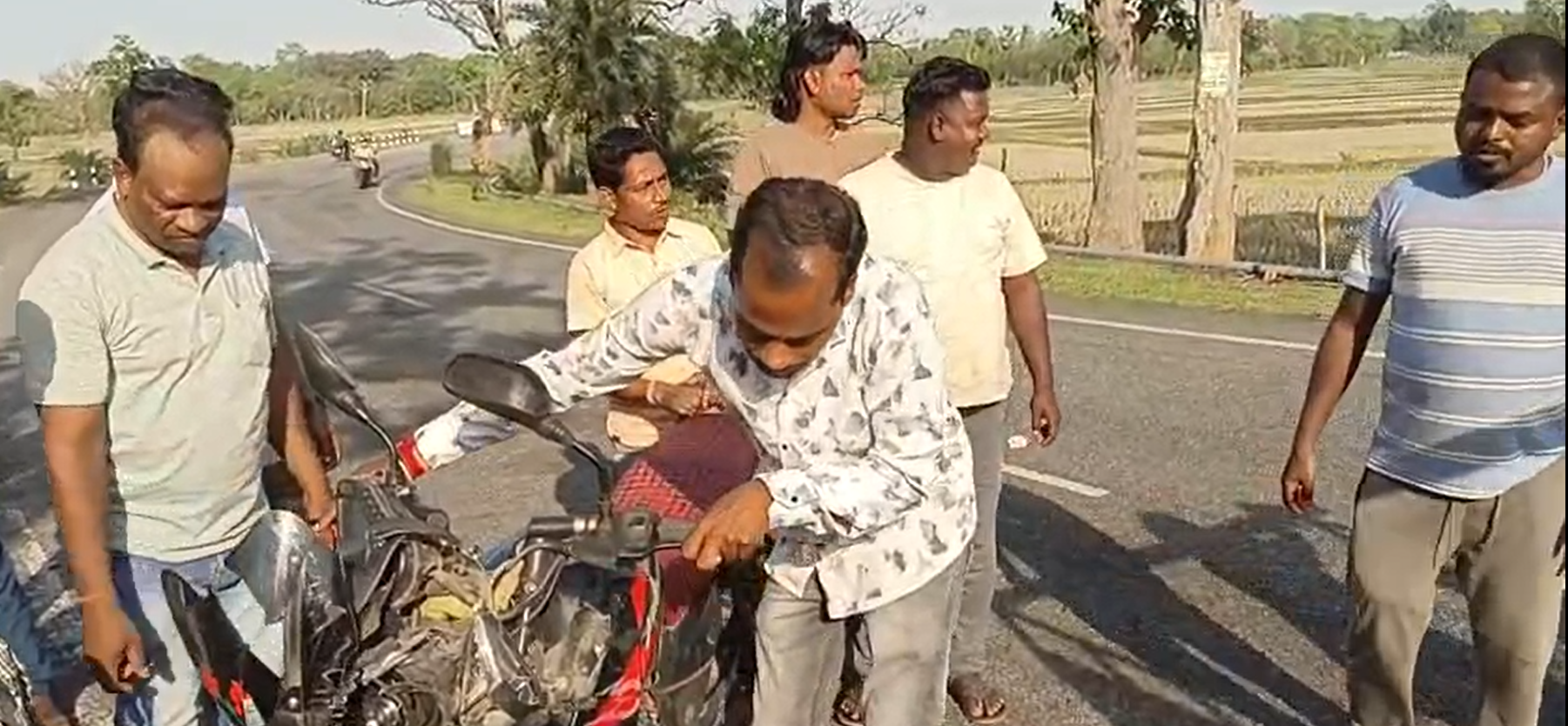 ମୟୁରଭଞ୍ଜ ଜିଲ୍ଲା ମୋରଡା ବ୍ଲକ ତଥା ବଡଜାମବଣି ଫାଣ୍ଡି ଅଧୀନ ଚିତ୍ରଡା-ଦାନ୍ତିଆମୁହାଁ ମୁଖ୍ୟ ରାସ୍ତାର ଦୁର୍ଗାପୁର ଛକ ନିକଟରେ ଦୁଇ ବାଇକ ମଧ୍ୟରେ ମୁହାଁମୁହିଁ ଧକ୍କା ହେବାରୁ ଜଣଙ୍କର ମୃତ୍ୟୁ ଘଟିଥିବା ବେଳେ ଅନ୍ୟ ତିନି ଆହତଙ୍କୁ ଉଦ୍ଧାର କରି ଡାକ୍ତରଖାନା ସ୍ଥାନାନ୍ତର କରାଯାଇଥିଲା। ମିଳିଥିବା ସୂଚନା ଅନୁସାରେ ଶନିବାର ଅପରାହ୍ନରେ ବଡ଼ସାହି ଥାନା ଅଧୀନ ମାଙ୍କଡ଼କେନ୍ଦା ଗ୍ରାମର ବୁଧୁ ରାମ ଏବଂ ନିଜର ୧୦ବର୍ଷର ନାବାଳିକା ଝିଅ ସୁଭଦ୍ରା ସେହି ଗ୍ରାମର ନିରଞ୍ଜନ ନାଏକର ପୁଅ ବାବୁଲା ନାଏକ ନିଜର ଓଆର-୦୧ଏନ-୫୦୮୨ ନମ୍ବର ବିଶିଷ୍ଟ ଏକ ବାଇକ ଯୋଗେ ଦାନ୍ତିଆମୁହାଁ ପଟୁ ଚିତ୍ରଡା ଅଭିମୁଖେ ଯାଉଥିବା ବେଳେ ବିପରୀତ ଦିଗରୁ ଓଡି -୦୧ଏଆର-୯୮୬୦ ନମ୍ବର ବିଶିଷ୍ଟ ଏକ ବାଇକଯୋଗେ ରାସଗୋବିନ୍ଦପୁର ଥାନା ବଡାମପୁର ଫାଣ୍ଡି ଅଧୀନ ବୋଧି ଗ୍ରାମର ରାଜକିଶୋର ସିଂଙ୍କ ପୁଅ ପ୍ରବୀର ସିଂ ଏବଂ ବାଲେଶ୍ୱର ଜିଲ୍ଲା ବସ୍ତା ଥାନା ଅଧୀନ ବାରବାଡିଆ ଗ୍ରାମର ମହାବୀର ରାମଙ୍କ ପୁଅ କୁନା ରାମ ଯାଉଥିବା ବେଳେ ଦୁର୍ଗାପୁର ଠାରେ ଦୁଇ ବାଇକ ମଧ୍ୟରେ ମୁହାଁମୁହିଁ ଧକ୍କା ହୋଇଥିଲା।