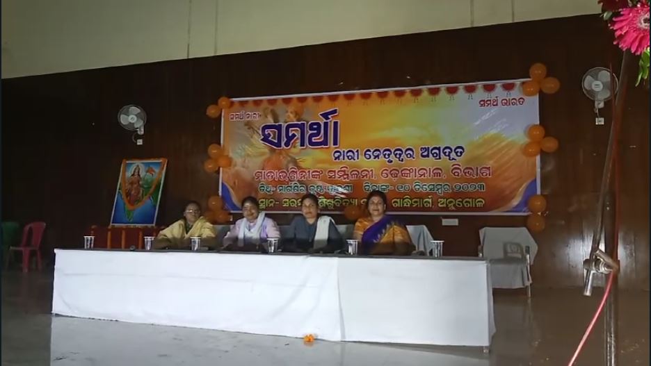 ଅନୁଗୁଳ:  ସ୍ଥିତ ସରସ୍ବତୀ ଶିଶୁ ମନ୍ଦିର ଠାରେ ଢେଙ୍କାନାଳ ବିଭାଗ ପକ୍ଷରୁ ମହିଳା ସମନ୍ୱୟର ଏକ ସମ୍ମିଳନୀ ‘ସମର୍ଥା ‘ ଜରପଡା ମହାବିଦ୍ୟାଳୟ ର ଅଧ୍ୟକ୍ଷା ଶ୍ରୀମତୀ ଶକ୍ତି ସ୍ୱରୂପାଙ୍କ ଅଧ୍ୟକ୍ଷତାରେ ତିନୋଟି ସତ୍ରରେ ଆୟୋଜିତ ହୋଇଯାଇଅଛି. ବେଦପାଠରୁ ସଭା କାର୍ଯ୍ୟ ଆରମ୍ଭ ହୋଇଥିଲା. ସରସ୍ବତୀ ଶିଶୁମନ୍ଦିର ଅନୁଗୁଳର ଭଉଣୀମାନେ ସ୍ୱାଗତ ସଂଗୀତ ଗାନ କରିଥିବାବେଳେ ବ୍ରହ୍ମରୂପା ସାହୁ ଓଡିଶୀ ନୃତ୍ୟ ପ୍ରଦର୍ଶନ କରିଥିଲେ. ପ୍ରଥମ ସତ୍ରରେ ସମ୍ମିଳନୀ ବିଭାଗ ସଂଯୋଜିକା, ବନ୍ତଳା ସରସ୍ବତୀ ଶିଶୁ ମନ୍ଦିରର ପ୍ରଧାନ ଆଚାର୍ଯ୍ୟା ଆରତି ଦ୍ବିବେଦୀ ସମ୍ମିଳନୀର ଉଦ୍ୟେଶ୍ୟ କଥନ କରିଥିଲେ ଓ ବିଭାଗ ସହସଂଯୋଜିକା ଉଷା ରାଣୀ ଦାସ ଅତିଥି ମାନଙ୍କ ପରିଚୟ ପ୍ରଦାନ କରିଥିଲେ. ଦୁର୍ଗାବାହିନୀ ଅଖିଳ ଭାରତୀୟ ସଂଯୋଜିକା ସୁଶ୍ରୀ ପ୍ରଜ୍ଞା ମାହଲା ମୁଖ୍ୟ ବକ୍ତା ଭାବେ ଉପସ୍ଥିତ ରହି ଭାରତୀୟ ଚିନ୍ତନରେ ମହିଳା ଶୀର୍ଷକରେ ନିଜର ସାରା ଗର୍ଭକ ବକ୍ତବ୍ୟ ଉପସ୍ଥାପନା କରିଥିଲେ. ଭାରତୀୟ ବ୍ୟବସ୍ଥା ସ୍ତ୍ରୀ ପ୍ରଧାନ ବା ପୁରୁଷ ପ୍ରଧାନ ନୁହେଁ ତାହା ଧର୍ମ ପ୍ରଧାନ ଓ ସମାଜହିତାକାରୀ ମହିଳା ଗୃହସ୍ଥ ଆଶ୍ରମର ଗୃହଲଷ୍ମୀ, ଧର୍ମପତ୍ନୀ, ପରିବାରକୁ ସନ୍ତାନ ସନ୍ତତି ଦେଉଥିବା, ପରିବାରକୁ ପଳନପୋଷଣ ଦେଉଥିବା ପ୍ରେରକ ସ୍ରୋତ. ମହିଳା ସମାଜ ରାଷ୍ଟ୍ର ଓ ସମାଜର ଅଙ୍ଗ ହେଉଥିବା ହେତୁ ଠାରୁ ସମାଜ ରାଷ୍ଟ୍ର ରାଷ୍ଟ୍ରର ପୁନଃରୁଥାନ ଓ ସୃଷ୍ଟିର ସଂରକ୍ଷଣରେ ସହାଭାଗିତା ଆଶା କରାଯାଏ ବୋଲି କହିଥିଲେ. ପ୍ରାନ୍ତ ସହସଂଯୋଜିକା ମହିଳା ସମନ୍ୱୟ ଦୀପ୍ତି ନାୟକ ମୁଖ୍ୟ ଅତିଥି ଭାବରେ ମଞ୍ଚରେ ଉପସ୍ଥିତ ରହି ସମାଜ ଓ ରାଷ୍ଟ୍ରର ଉତ୍ଥାନରେ ଭାରତୀୟ ମହିଳା ତାର ଜୀବନ ମୂଲ୍ୟ ଆଧାରରେ ତ୍ୟାଗ ସେବା କ୍ଷମା ପୁରୁଷାର୍ଥ ବନ୍ଧୁତା ସୌହାର୍ଦ୍ଧ ସାମଞ୍ଜସ୍ୟ ଓ ସଦଭାବ ଦ୍ୱାରା ବ୍ୟକ୍ତିର ରାଷ୍ଟ୍ରର ଉତ୍ଥାନ ବିଷୟକୁ ଉପସ୍ଥାପନ କରିଥିଲେ.ଉକ୍ତ ସମ୍ମିଳନୀରେ ବିଭିନ୍ନ କ୍ଷେତ୍ରରେ ଉଲ୍ଲେଖ ଯୋଗ୍ୟ କାର୍ଯ୍ୟ କରିଥିବା ଦୁଇଜଣ ବିଶିଷ୍ଟ ମହିଳା, ସାଗର ବାଳା ହୋତା ଏବଂ ଡ଼ ସୁଚେତା ମିଶ୍ର ଓ ସୁଶ୍ରୀ ସୁଷମା ବେହେରାଙ୍କୁ ସମର୍ଥା ସମ୍ମାନରେ ସମ୍ମାନିତ କରାଯାଇଥିଲା. ଦ୍ଵିତୀୟ ସତ୍ରରେ ଦୁଇଟି ଗଟ ମାଧ୍ୟମରେ ସ୍ଥାନୀୟ ମହିଳାଙ୍କ ସ୍ଥିତି, ତାଙ୍କ ସମସ୍ୟା ଓ ତାର ସମାଧାନ ବିଷୟରେ ଚର୍ଚ୍ଚା ଆଲୋଚନା କରାଯାଇଥିଲା. ସେଥିରେ ଚର୍ଚ୍ଚା ପ୍ରବର୍ତ୍ତକ ଥିଲେ ଉଷା ରାଣୀ ଦାସ ଓ ମମିତା ବେହେରା. ସମାପନ ସତ୍ରରେ ମୁଖ୍ୟବକ୍ତା ଭାବରେ ରାଷ୍ଟ୍ରଦୀପ ପତ୍ରିକାର ସହ ସମ୍ପାଦିକା ଓ ମହିଳା ସମନ୍ୱୟର ପ୍ରାନ୍ତ ଟୋଲୀ ସଦସ୍ୟା ପ୍ରଜ୍ଞା ପରିମିତା ଆଚାର୍ଯ୍ୟ ଭାରତର ବିକାଶରେ ମହିଳାମାନଙ୍କ ଭୂମିକା ସମ୍ପର୍କରେ ସୁଚିନ୍ତିତ ବକ୍ତବ୍ୟ ରଖିଥିଲେ. ଶେଷରେ
