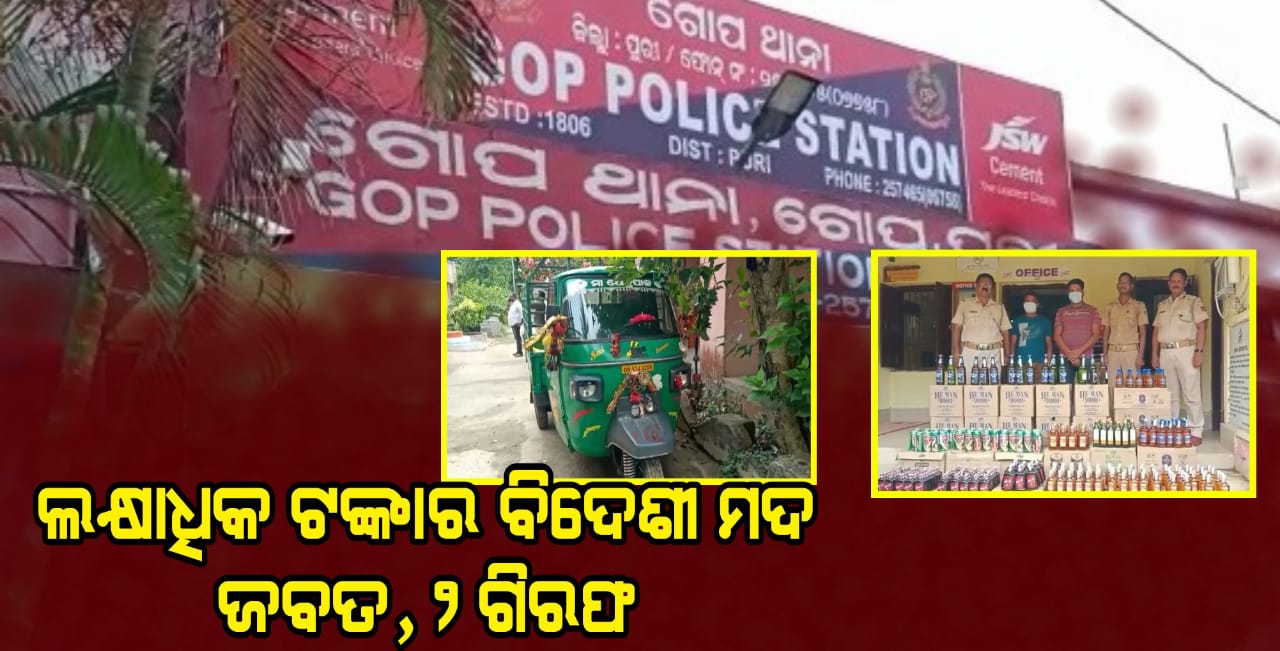 ଲକ୍ଷାଧିକ ଟଙ୍କାର ବିଦେଶୀ ମଦ ଜବତ, ୨ ଗିରଫ
