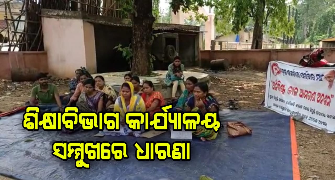 ଶିକ୍ଷାବିଭାଗ କାର୍ଯ୍ୟାଳୟ ସମ୍ମୁଖରେ ଧାରଣା।
