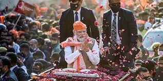 ୟୁପି ମତଦାନର ଶେଷ ପର୍ଯ୍ୟାୟ ପୂର୍ବରୁ ପ୍ରଧାନମନ୍ତ୍ରୀ ନରେନ୍ଦ୍ର ମୋଦୀ ବାରାଣାସୀର ବିଧାନସଭା ନିର୍ବାଚନମଣ୍ଡଳୀରେ ଏକ ରୋଡ୍ ସୋ କରିଥିଲେ।ମାର୍ଚ୍ଚ 7 ରେ ହେବାକୁ ଥିବା ରାଜ୍ୟ ନିର୍ବାଚନର ଶେଷ ପର୍ଯ୍ୟାୟ ପୂର୍ବରୁ ବିଜେପି ପ୍ରାର୍ଥୀଙ୍କୁ ସମର୍ଥନ ଜଣାଇ ଉତ୍ତରପ୍ରଦେଶର ବାରାଣାସୀରେ ପ୍ରଧାନ ମନ୍ତ୍ରୀ ନରେନ୍ଦ୍ର ମୋଦୀ ଏକ ରୋଡ ସୋ କରିଥିଲେ। ପଡୋଶୀ ମିର୍ଜାପୁରରେ ଏକ ରାଲିରେ ସମ୍ବୋଧିତ କରିବା ପରେ ପ୍ରଧାନମନ୍ତ୍ରୀ ମୋଦୀ ତାଙ୍କ ବାରାଣାସୀ ଲୋକସଭା ନିର୍ବାଚନମଣ୍ଡଳୀରେ ପହଞ୍ଚିଛନ୍ତି। ସେ ମାଲଦାହିୟା କ୍ରସିଂରେ ସର୍ଦ୍ଦାର ଭାଲାଭଭାଇ ପଟେଲଙ୍କ ଏକ ପ୍ରତିମୂର୍ତ୍ତିକୁ ସଜାଇବା ପରେ ରୋଡ ସୋ ଆରମ୍ଭ କରିଥିଲେ। ପ୍ରଧାନମନ୍ତ୍ରୀଙ୍କ କନଭେନ ସହର ଦେଇ ଗଲାବେଳେ ଜନତା ‘ଜୟ ଶ୍ରୀ ରାମ’ ଜପ କରିବା ସହ ଗୋଲାପ ଫୁଲ ବର୍ଷିଥିଲା ପ୍ରଧାନମନ୍ତ୍ରୀ ବେକରେ ଏକ ସାଫ୍ରନ୍ କ୍ୟାପ୍ ଏବଂ ଏକ “ଗାମା” (ଟାୱେଲ୍) ପିନ୍ଧିଥିଲେ l