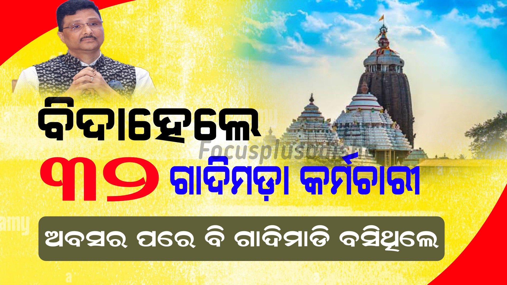 ଶ୍ରୀମନ୍ଦିର କାର୍ଯ୍ୟାଳୟରେ କାର୍ଯ୍ୟରତ ୩୨ କର୍ମଚାରୀ ବିଦା ହେଲେ ଶ୍ରୀମନ୍ଦିର କାର୍ଯ୍ୟାଳୟରେ କାର୍ଯ୍ୟରତ ୩୨ ଜଣ ଅବସରପ୍ରାପ୍ତ ଅଧିକାରୀ ଓ କର୍ମଚାରୀଙ୍କୁ ରାଜ୍ୟ ସରକାର ବିଦା କରିଛନ୍ତି। ଏହି ୩୨ ଜଣଙ୍କୁ ନିଯୁକ୍ତି ମିଳିଥିବା ନେଇ ଗଣମାଧ୍ୟମରେ…