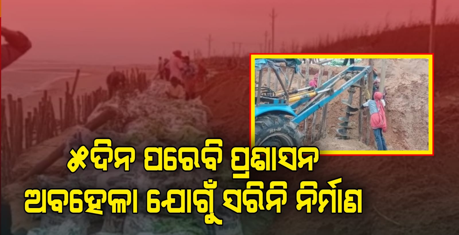 ଫୋକସ ପ୍ଲସ(କୋଣାର୍କ)୧୫/୦୯/୨୦୨୨: ପୂର୍ଣ୍ଣିମା ଜୁଆର ୭ଦିନ ହୁଏ। ଏହାରି ଭିତରେ ସମୂଦ୍ର ଜୁଆରରେ ବଡବଡ ଲହରୀ ଦେଖାଦିଏ,ଯାହା ଫଳରେ ପୁରୀ କୋଣାର୍କ ବେଳାମାର୍ଗ ର ରାସ୍ତା ଖାଇବାରେ ଲାଗିଲା ସମୂଦ୍ର। ଏହାକୁ ନେଇ ସମସ୍ତ ଗଣମାଧ୍ୟମରେ ପ୍ରକାଶ କରାଗଲା। ହେଲେ ଫଳ ଶୂନ୍ୟ ,ଜିଲ୍ଲା ପ୍ରଶାସନ ପକ୍ଷରୁ ଗତ ୪ଦିନ ହେବ ଅସ୍ଥାୟୀ ବାଡ ସହ ବାଲିବସ୍ତା ପକାଯାଉଛି । ୨କୋଟି ୬୦ଲକ୍ଷ ଟଙ୍କା ଖର୍ଚ୍ଚ ରେ କରାଯିବ ବାଡ, ପଡିବ ବାଲି ବସ୍ତା ହେଲେ ଆଜକୁ ୪ଦିନ ବିତିଗଲା ପରେବି ପଡି ପାରିଲା ନାହିଁ ବାଡ ଓ ବାଲିବସ୍ତା ଏବେବି ଚାଲିଛି ବନ୍ଧ କାର୍ଯ୍ୟ । ଆସନ୍ତା ୧୬ବା ୧୭ତାରିଖରେ ଆସୁଥିବା ଲଘୁଚାପ ପୂର୍ବରୁ ଅସ୍ଥାୟୀ ବାଡ ସହ ବାଲିବସ୍ତା ପକା ନ ଯାଏ।ତାହାଲେ ପୁରୀ କୋଣାର୍କ ବେଳାମାର୍ଗ ରାସ୍ତା ଲୀନ ହୋଇଯିବ ସମୂଦ୍ର ଗର୍ଭରେ। ତେବେ ତୁରନ୍ତ ରାଜ୍ୟ ସରକାର ଜରୁରୀ କାଳୀଣ ପରିସ୍ଥିତି ରେ ସମସ୍ତ କାର୍ଯ୍ୟ ଶେଷ କରିବାକୁ ଦାବି କରିଛନ୍ତି କୋଣାର୍କ ବାସିନ୍ଦା।