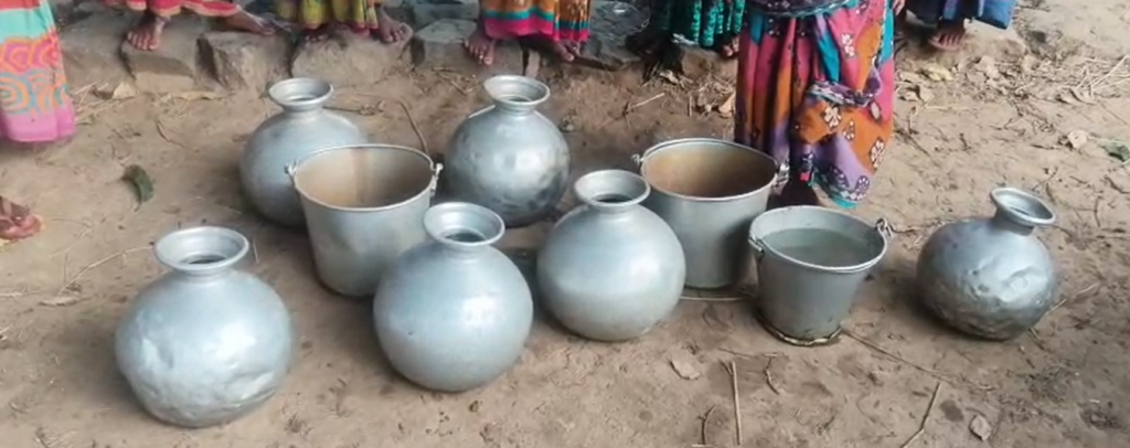 Even though the provision of piped drinking water in the village under the Basudha Yojana project is reported, the real scenario contradicts those reports. The villagers depend on river water for their basic requirements. As the temperature increases, villagers (mainly women) have to walk miles with pots and buckets to collect water from the rivers.